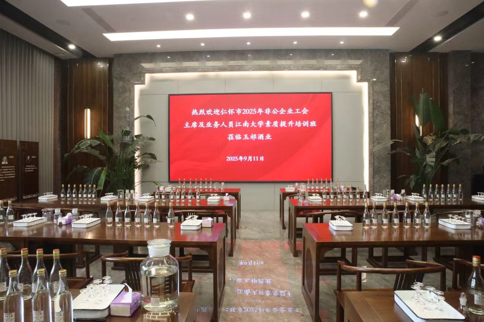 2025 年 9 月 11 日,懷仁市非公企業(yè)工會主席及業(yè)務(wù)人員江南大學素質(zhì)提升培訓班一行,蒞臨玉祁酒業(yè)開展分享交流活動。這座底蘊深厚的酒業(yè)基地,不僅為培訓班學員們帶來了一次獨特的實踐學習體驗,更搭建起了一座企業(yè)間溝通交流的堅實橋梁。